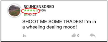 If a trader only fields offers and never makes them, they can really be in control of their rating. Once a trade is accepted, both parties get to rate each other. Be careful of taking advantage of this generosity, because it is far from guaranteed. This doesn’t mean you shouldn’t make offers, because that isn’t logical as a part of the game. You need to make offers to be successful, just be conscious of how you do it. A lot can be gleaned from the post on the feed.