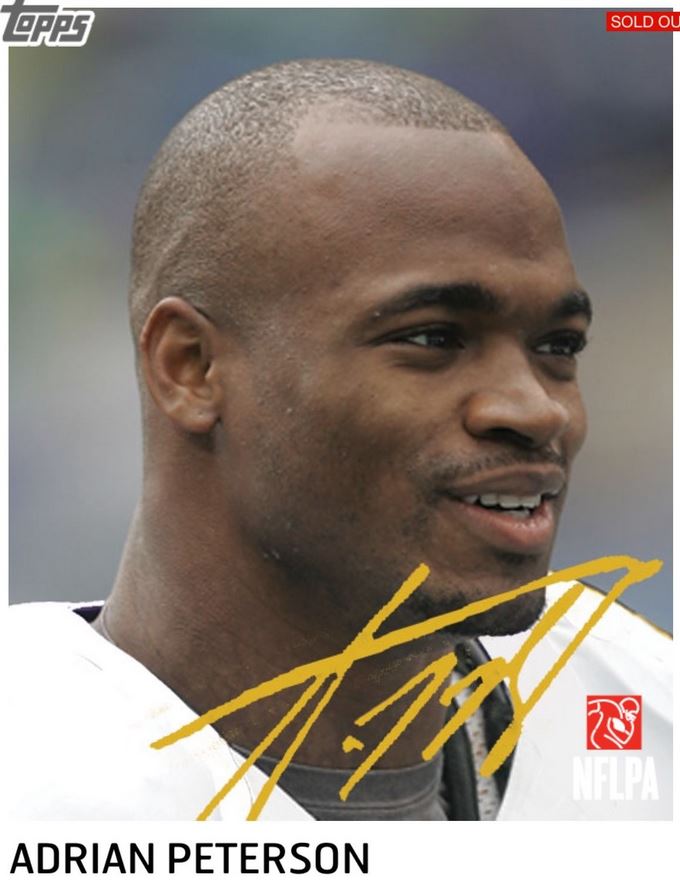 When I first joined up with Topps Bunt at the beginning of the app, I didnt really get the appeal until the sig cards were first introduced in 2013. In fact, one of my first insert cards I ever pulled was the Adrian Peterson sig on 2013 Huddle, which got me going full time on both apps. Football is my main sport, and pulling that card was by far one of the coolest things that has happened to me, even to this day.