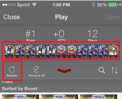 NOTE: You can repeatedly hit the refresh lineup button from the play page to see if your points have accumulated. Once they have, move onto the next lineup you want to load for a particular scoring play. DO NOT SWITCH your lineup until points hit, unless you are comfortable missing those.